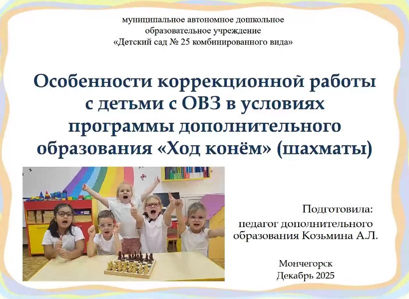 Анна Леонидовна Козьмина, учитель-логопед МАДОУ №25 г. Мончегорск, поделилась уникальным опытом использования шахмат в коррекционной работе по программе «Ход конём».