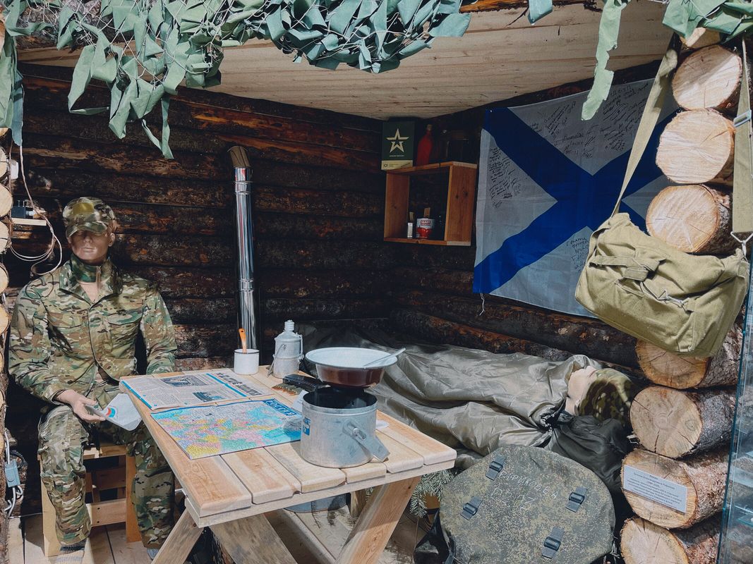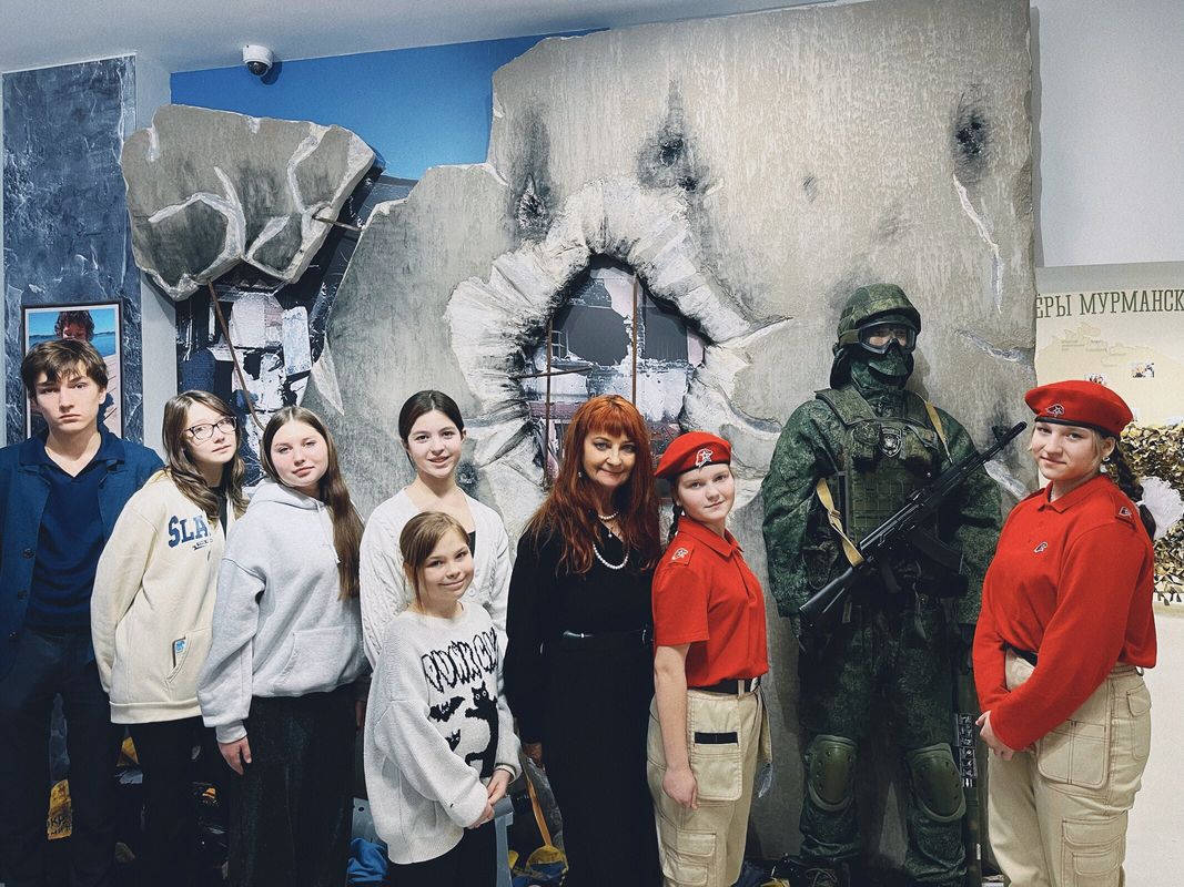 Особенно юнармейцев впечатлила выставка "Сила в людях". Здесь собраны истории Героев, представлены предметы, переданные войсковыми соединениями и силовыми структурами Мурманской области, которые участвуют в боевых действиях на Украине – трофеи, элементы вооружения, сбитые вражеские беспилотные аппараты, образцы униформы.